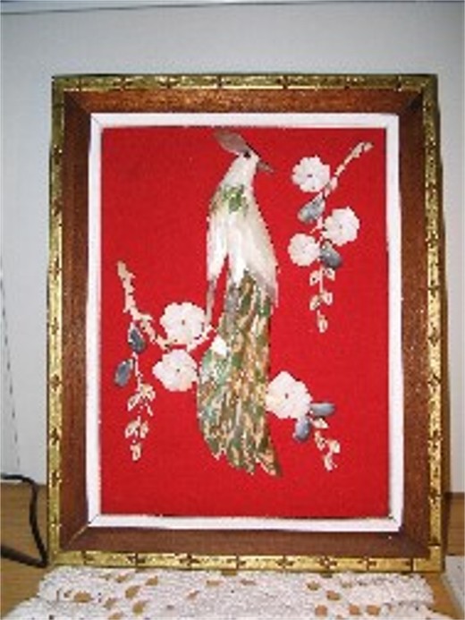 muschelbild eine sehr aufwendige handarbeit aus asien, einzelstueck,alter unbekannt, seit ca. 40 jahren in privatbesitz.